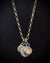 Paired with it is a shield-like bronze medal, heavily textured and marked, evoking defense and resolve, and a faceted citrine set in oxidized sterling silver. The stone adds warmth and clarity, offering light without softness.