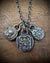 All three medals are suspended from a substantial 20" oxidized sterling silver chain, designed to be worn as a complete, fixed composition. Nothing is decorative. Nothing is interchangeable.