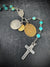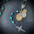 A one-of-a-kind relic necklace hand-forged with intention and reverence. This piece features vivid turquoise beads paired with antique religious medals and an aged silver crucifix — each element carrying a story of devotion and endurance. The blend of patinaed metals and worn turquoise evokes a sacred relic unearthed, timeless and protective.