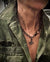 The chain has real presence on the body. Substantial, intentional — a statement of position rather than decoration. The cross sits with quiet authority, its oxidized surface catching light without chasing it.