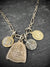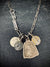 A gathering of guardians. The Saints & Shadows Necklace carries a small constellation of vintage medals — each worn smooth by time, each holding its own quiet power. Saint Thérèse, Mary, and the nameless ones who’ve weathered centuries together now live on this hand-forged chain — relics reborn for the modern soul.