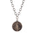 Cast in ancient bronze and suspended from a substantial handmade chain, she stands as a guardian and reminder that even in ruin, beauty prevails.